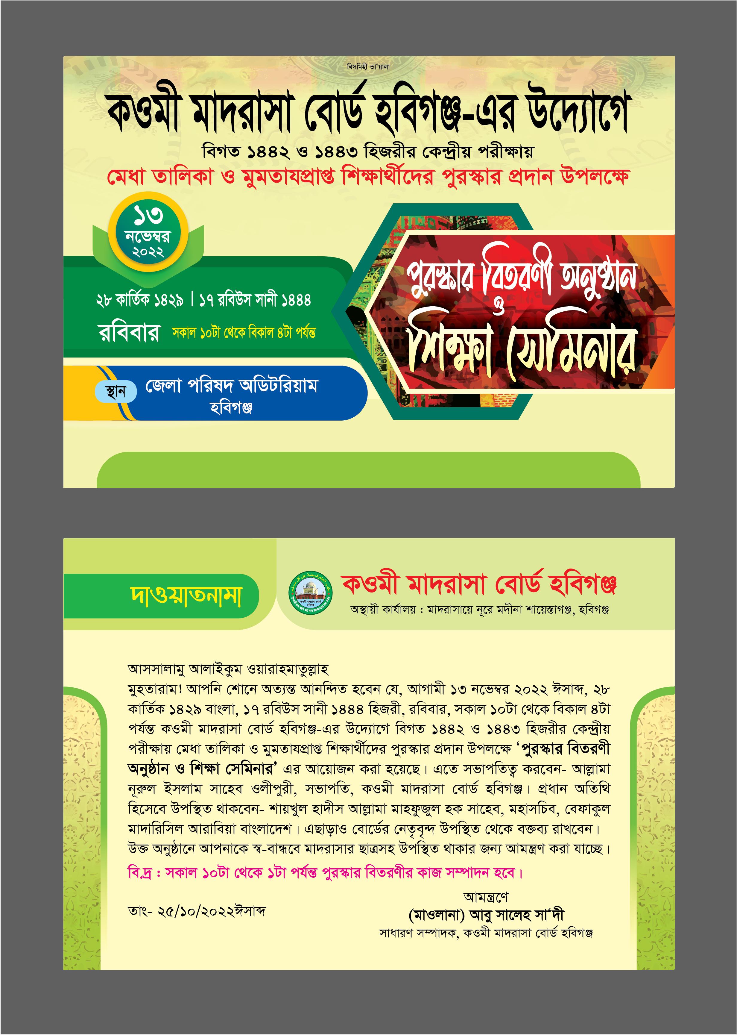 পুরস্কার বিতরণী অনুষ্ঠান ও শিক্ষা সেমিনারের ব্যানার