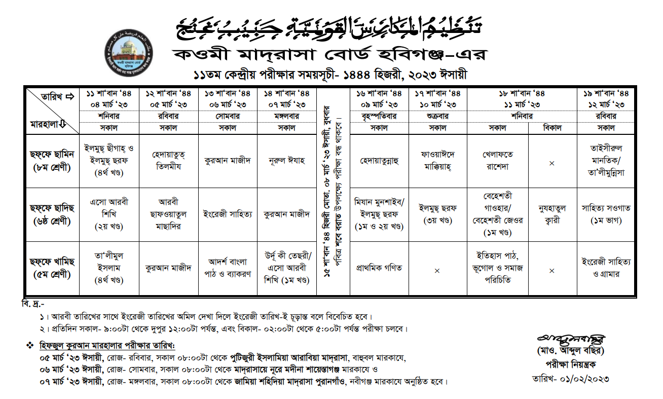 ১১তম কেন্দ্রীয় পরীক্ষা- ১৪৪৪ হিজরী, ২০২৩ ঈসায়ী